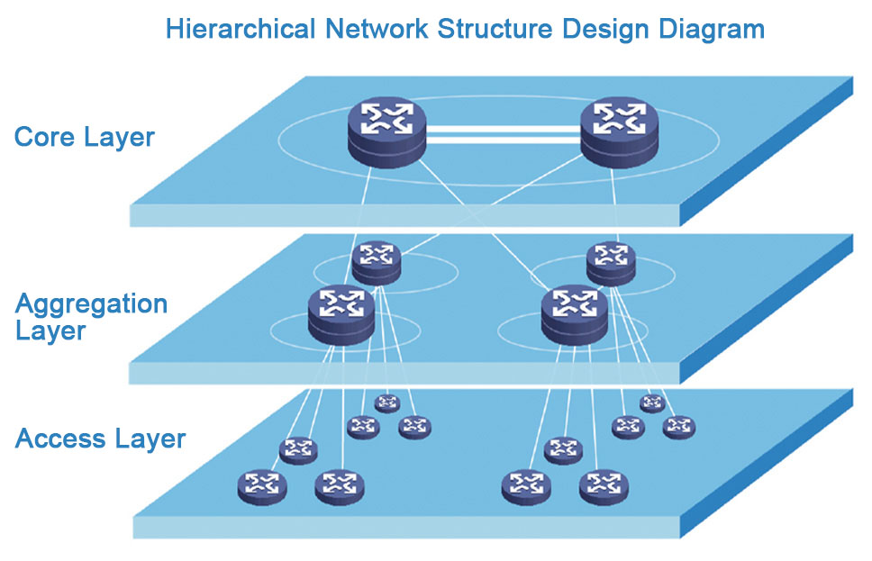 For the network planning of regional-level power dispatch data networks, a three-layer network architecture is designed, namely the core layer, aggregation layer, and access layer. The core layer serves as the convergence center for network services, typically only performing data switching functions. The aggregation layer, located between the core layer and the access layer, primarily performs service aggregation and distribution. The access layer mainly connects user services to the network, implementing quality assurance and access control.