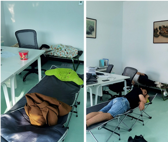 为保障平台平稳高效运行,28名研发人员每天吃住在现场,白天做好运维保障,夜里进行针对性的开发和优化升级。小组成员曲扬说,从8月3日到9日连续7天大家都工作到凌晨4点多甚至通宵。累了就用自来水洗把脸,实在困了就在桌子上趴一会。更多时候大家都在兴奋中工作着,每个人都为能为疫情防控做出一点贡献感到自豪。整整七天,小组人均睡眠不到4小时。烟台市大数据局的领导和工作人员,也一起坚守在开发现场,不眠不休。