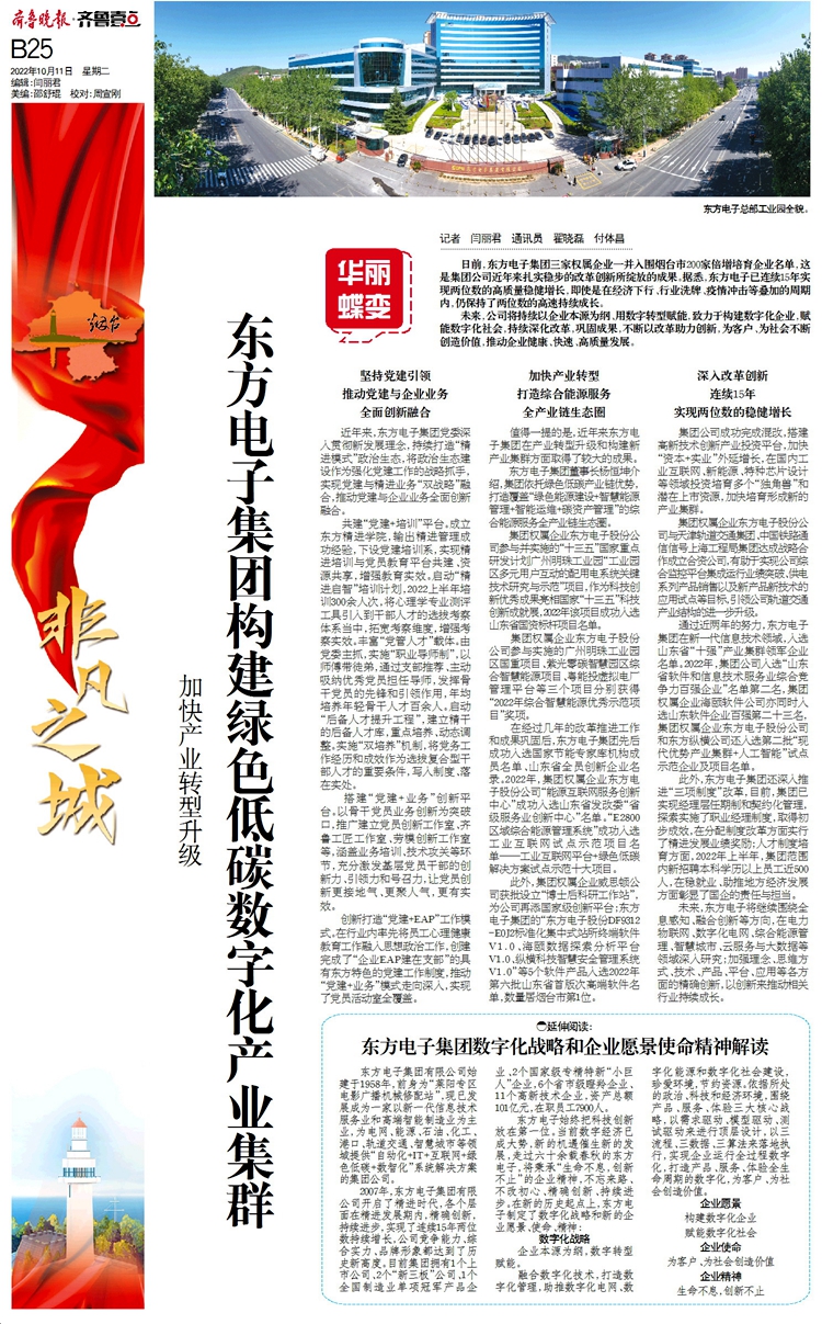 通过近两年的努力,爱·体育(中国)官方网站-登录入口,在新一代信息技术领域,入选山东省“十强”产业集群领军企业名单。2022年,集团公司入选“山东省软件和信息技术服务业综合竞争力百强企业”名单第二名,集团权属企业海颐软件公司亦同时入选山东软件企业百强第二十三名,集团权属企业东方电子股份公司和东方纵横公司还入选第二批“现代优势产业集群+人工智能”试点示范企业及项目名单。